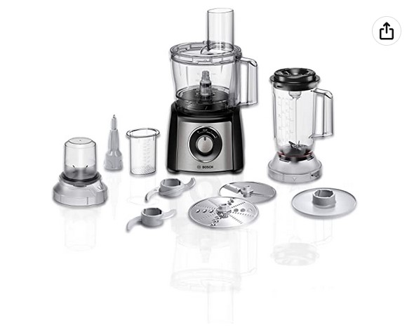 - Articolo consegnato: 1x Bosch Robot Cucina, 800 W, Ciotola 2,3 l, Bicchiere Frullatore 1 l con Coperchio e Misurino Alimenti, Lame per Macinare Ingredienti Duri, Tagliare e Impastare e Altri Accessori